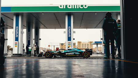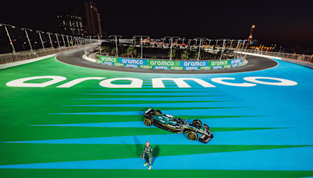 The celebration began with Aston Martin Aramco Driver Ambassador Jessica Hawkins – who made history a year ago as the first woman to drive a modern ground-effect Formula One car – returning to the wheel for the second time. The symbolic journey saw Hawkins take the AMR23 across Saudi Arabia, stopping at a number of locations, including Ithra, Aramco's remarkable cultural home in Dammam, as well as a newly unveiled Aramco premium retail station, and finishing at the iconic Jeddah Corniche Circuit.